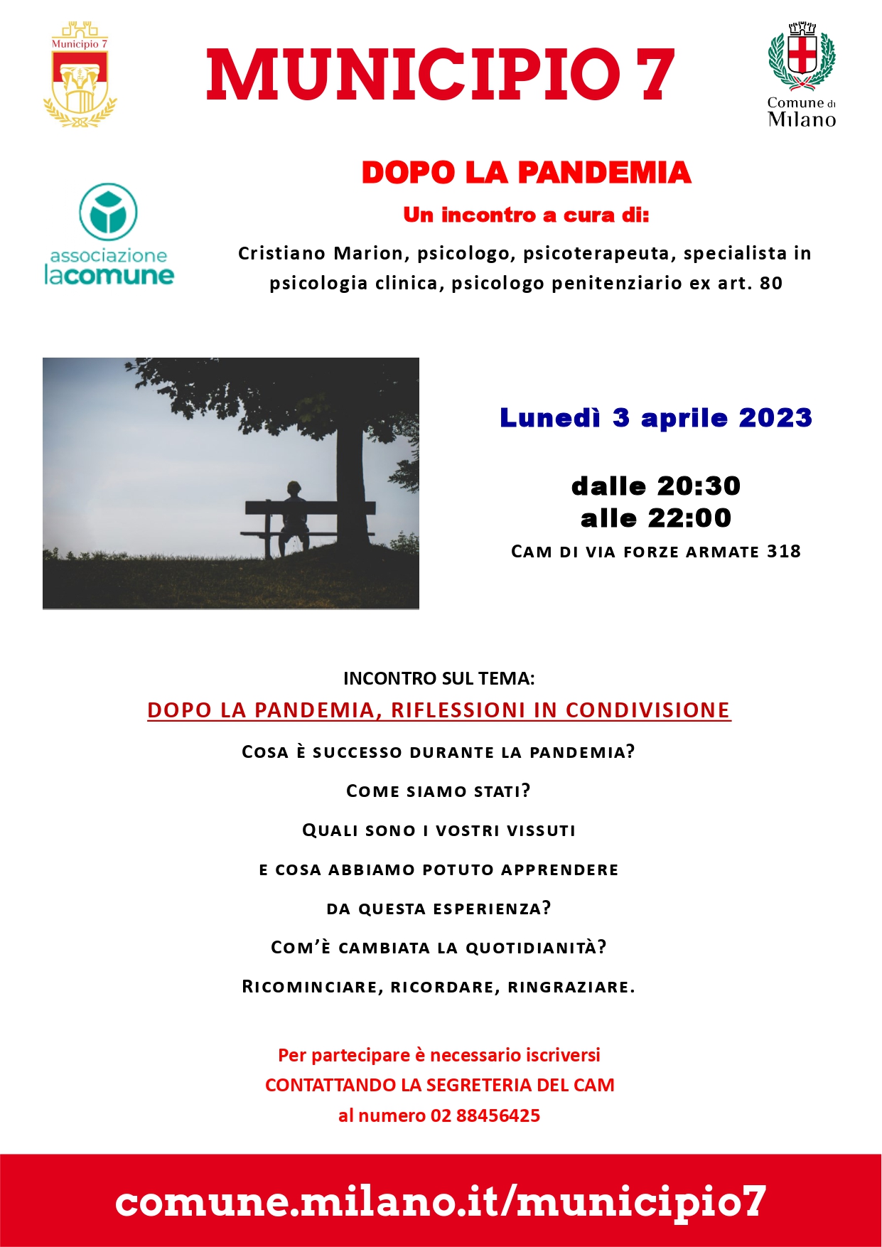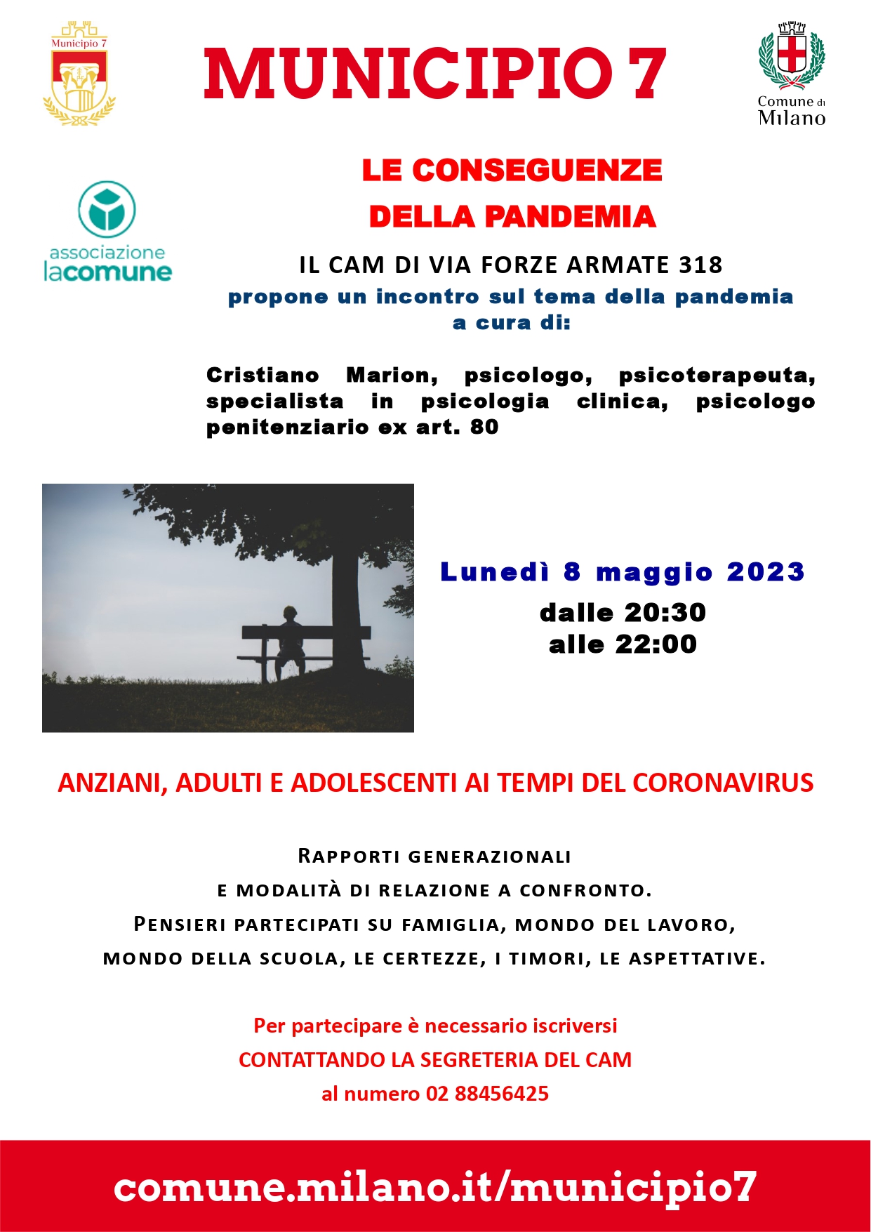 Il primo incontro si terrà lunedì 3 aprile dalle 20:30 alle 22:00, il secondo lunedì 8 maggio dalle 20:30 alle 22:00, presso il CAM di via Forze Armate 318.