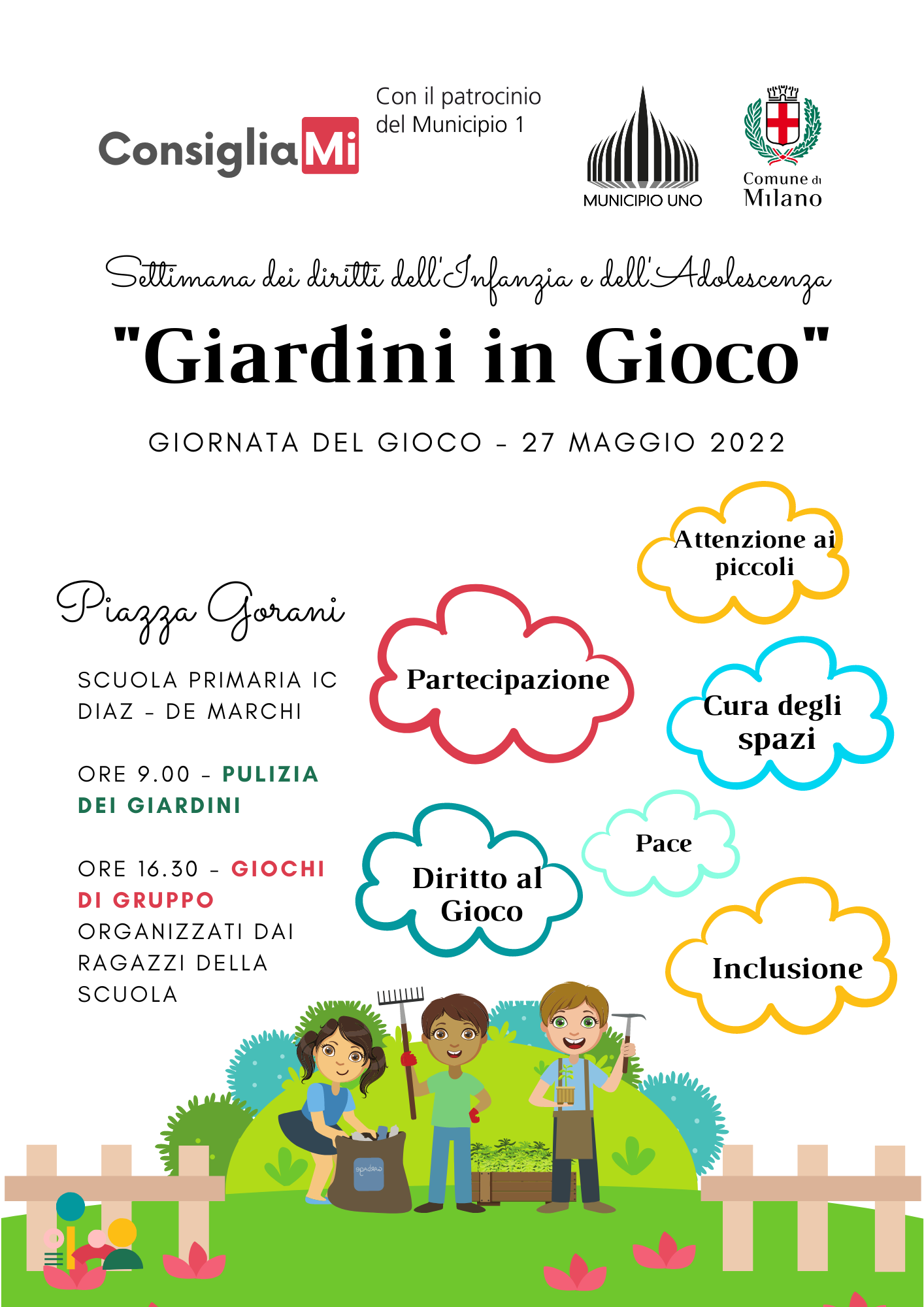Il Comune di Milano, con i Municipi, promuove il progetto ConsigliaMI: “Milano, città anche dei bambini e delle bambine, dei ragazzi e delle ragazze”, per proseguire ed arricchire l’esperienza dei Consigli di Municipio dei Ragazzi e delle Ragazze (CdMRR) avviata nel 2013 in ogni Municipio della città.