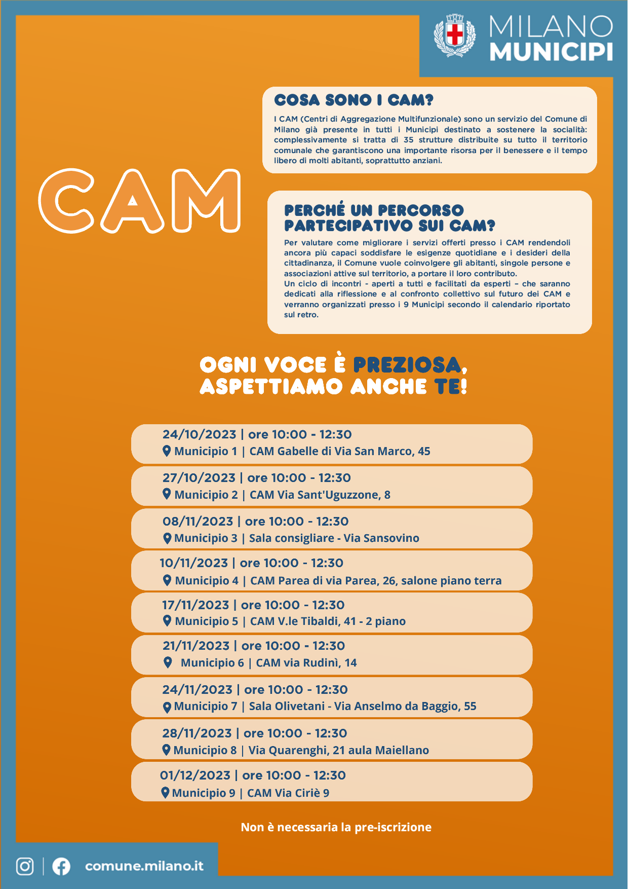 In Municipio 2, l'appuntamento è per venerdì 27 ottobre 2023 alle 10:00, presso il C.A.M. di via Sant'Uguzzone 8.