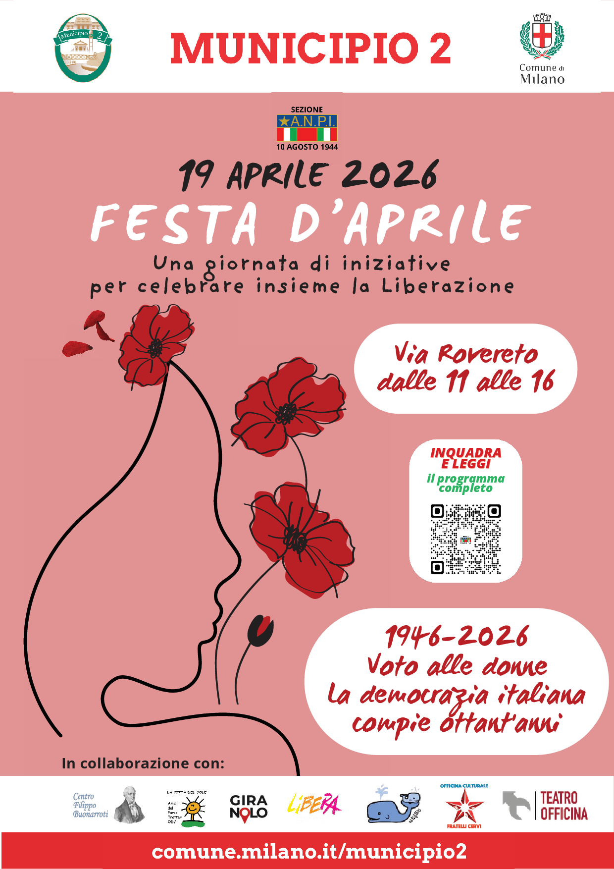 L’evento si svolgerà domenica 19 aprile 2026, dalle 10:30 alle 16:00 in via Rovereto, e intende offrire alla cittadinanza un momento di partecipazione e condivisione, con attività culturali e commemorative rivolte a tutte le fasce di età, nel segno della storia e dell’impegno civile.