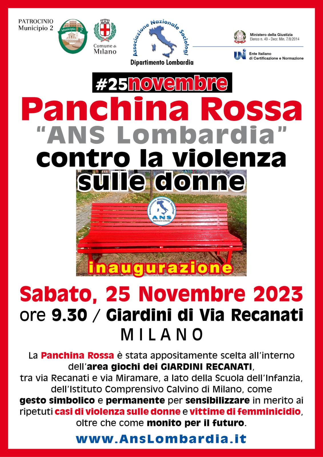 Scarica qui la locandina Panchina rossa giardino via Gilardi