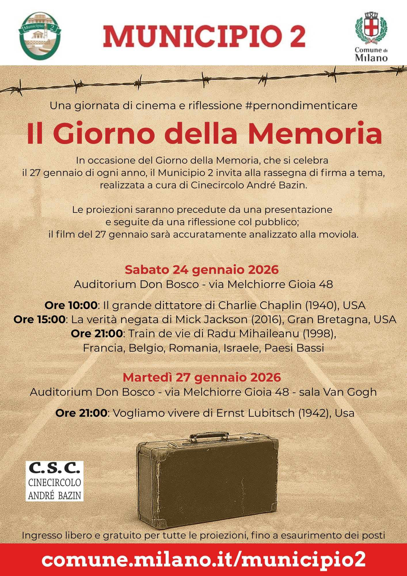 Per non dimenticare. Un calendario di iniziative culturali e commemorative dedicate alla memoria della Shoah, tra cinema, musica e testimonianza.
