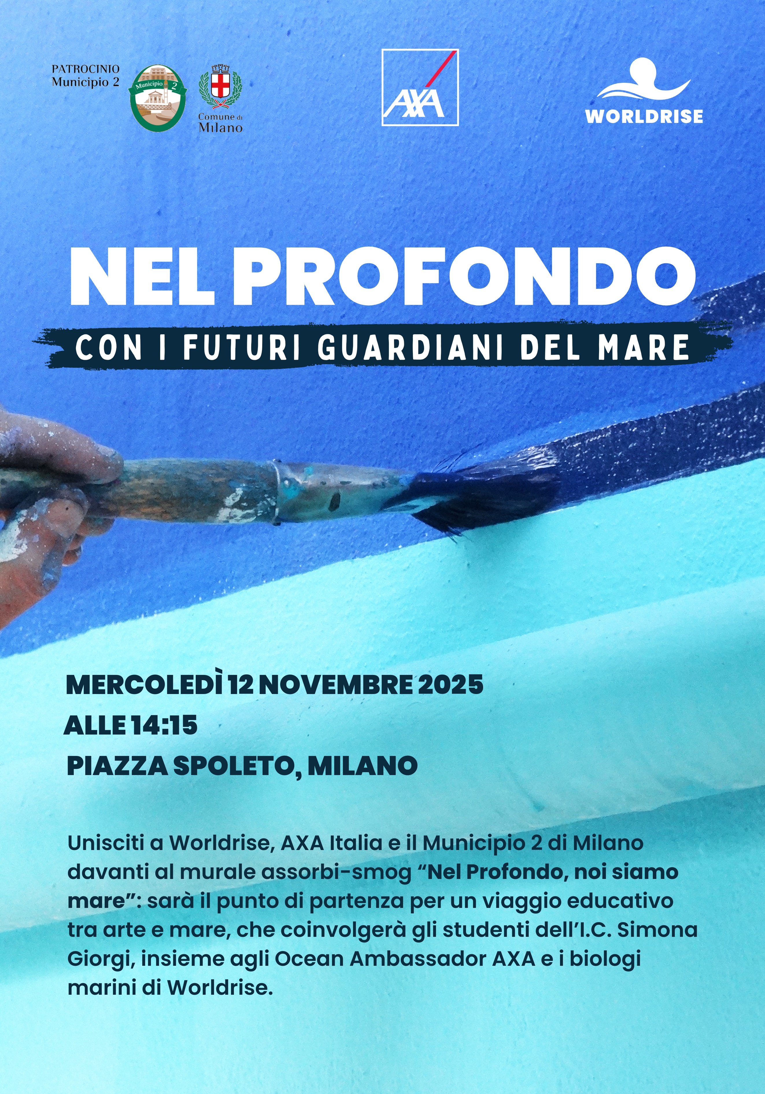 L’evento prende avvio dal murales “Nel Profondo – Noi siamo mare”, ad opera dell’artista Bedo, quale spunto per raccontare l’impegno collettivo verso la salvaguardia del mare anche in contesti urbani.