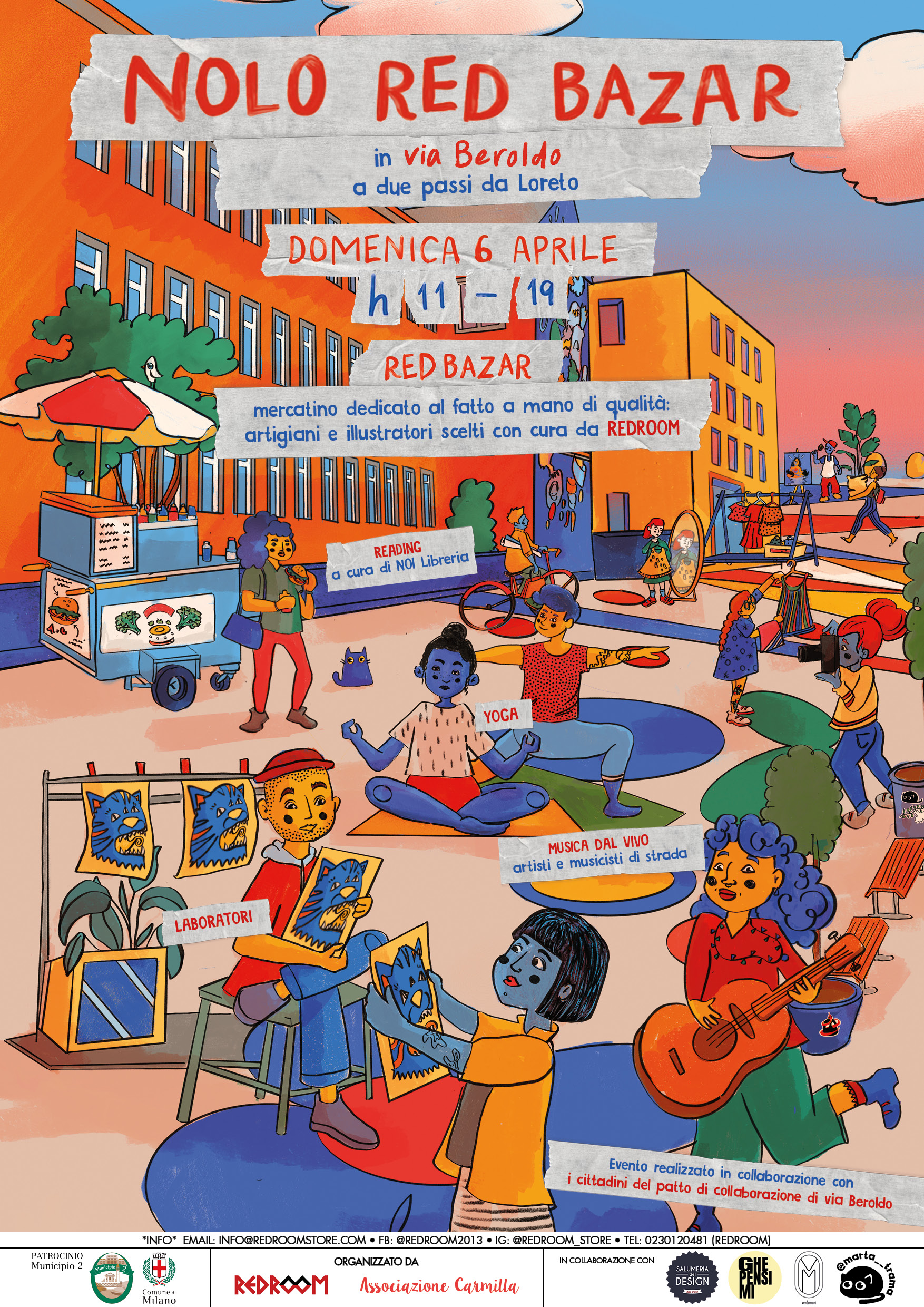 Il RED BAZAR si svolge all'aperto su strada. L'evento è patrocinato dal Municipio 2 e organizzato in collaborazione con i cittadini e le realtà di zona parte del Patto di collaborazione di via Beroldo.