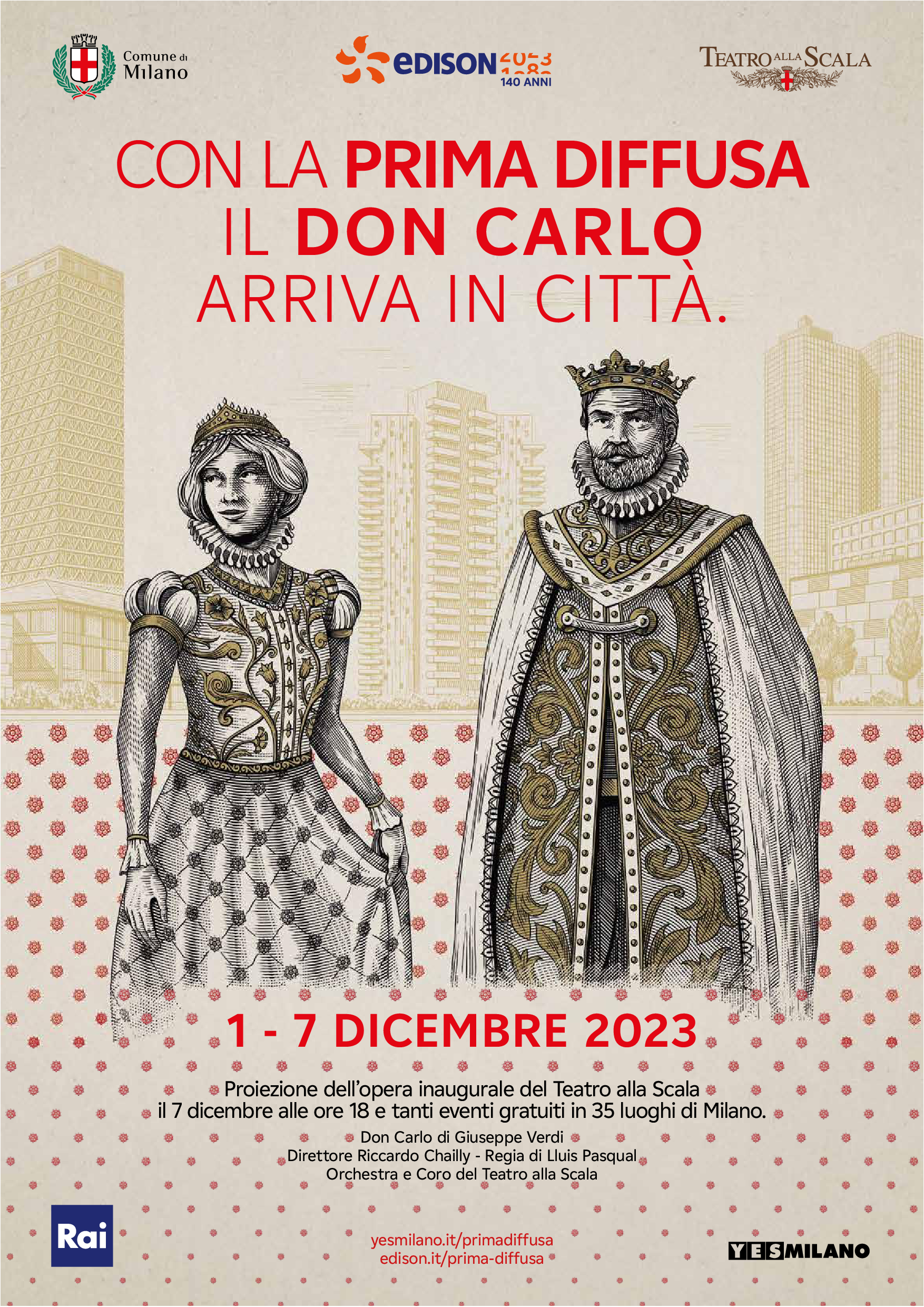 Milano, 02 dicembre 2023 - Dal 1° al 7 dicembre il Comune di Milano insieme a Edison porta in tutta la città l’opera che inaugura la stagione 2023/2024 del Teatro alla Scala, Don Carlo di Giuseppe Verdi, con la regia di Lluís Pasqual.