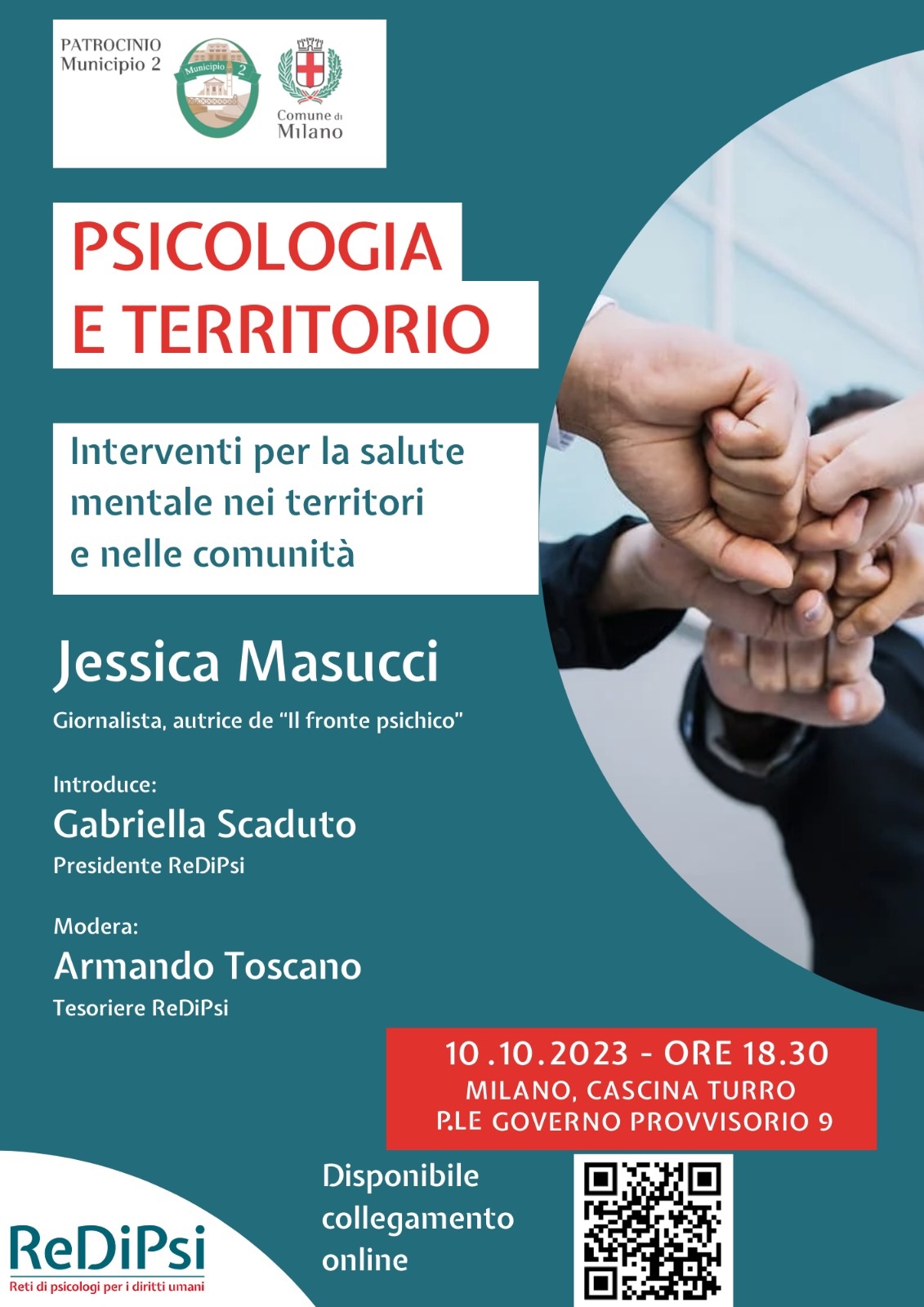 Appuntamento quindi il 10 ottobre 2023 alle 18:30, presso Cascina Turro - piazzale Governo Provvisorio 9 - con Jessica Masucci, giornalista e autrice de "Il fronte psichico".