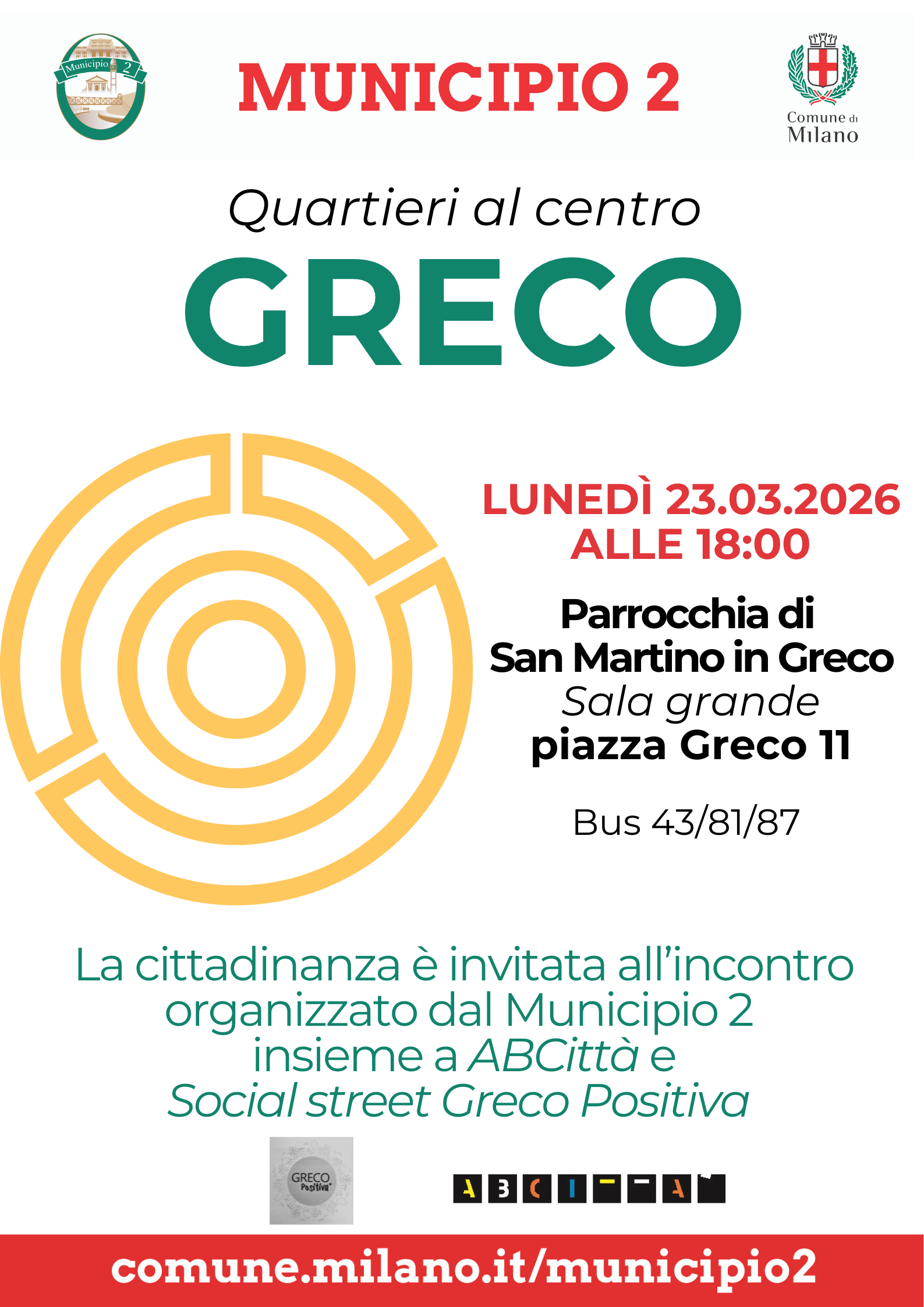 L’incontro è organizzato in collaborazione con ABCittà e Social Street Greco Positiva.