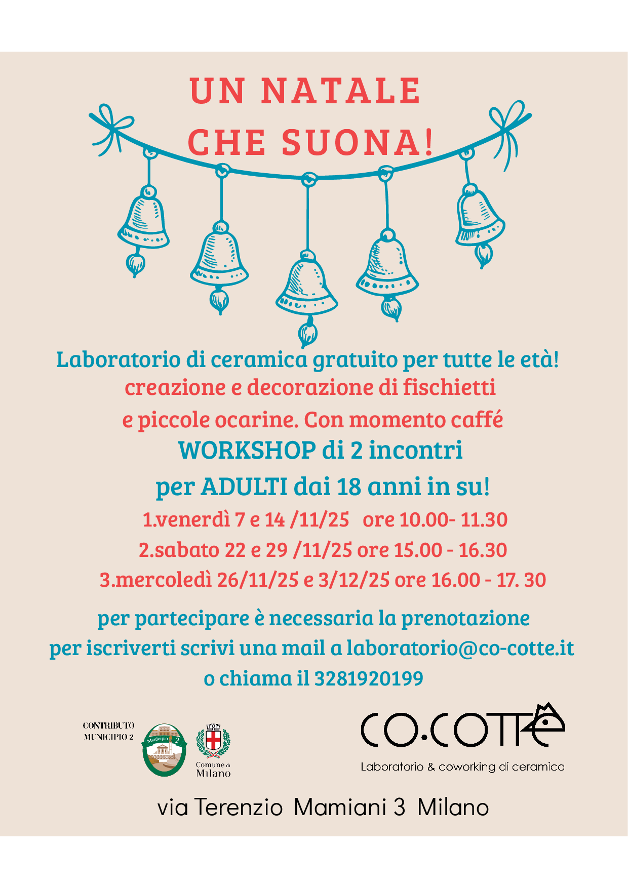 Per partecipare è necessaria la prenotazione: scrivere a laboratorio@co-cotte.it oppure telefonare al 3281920199