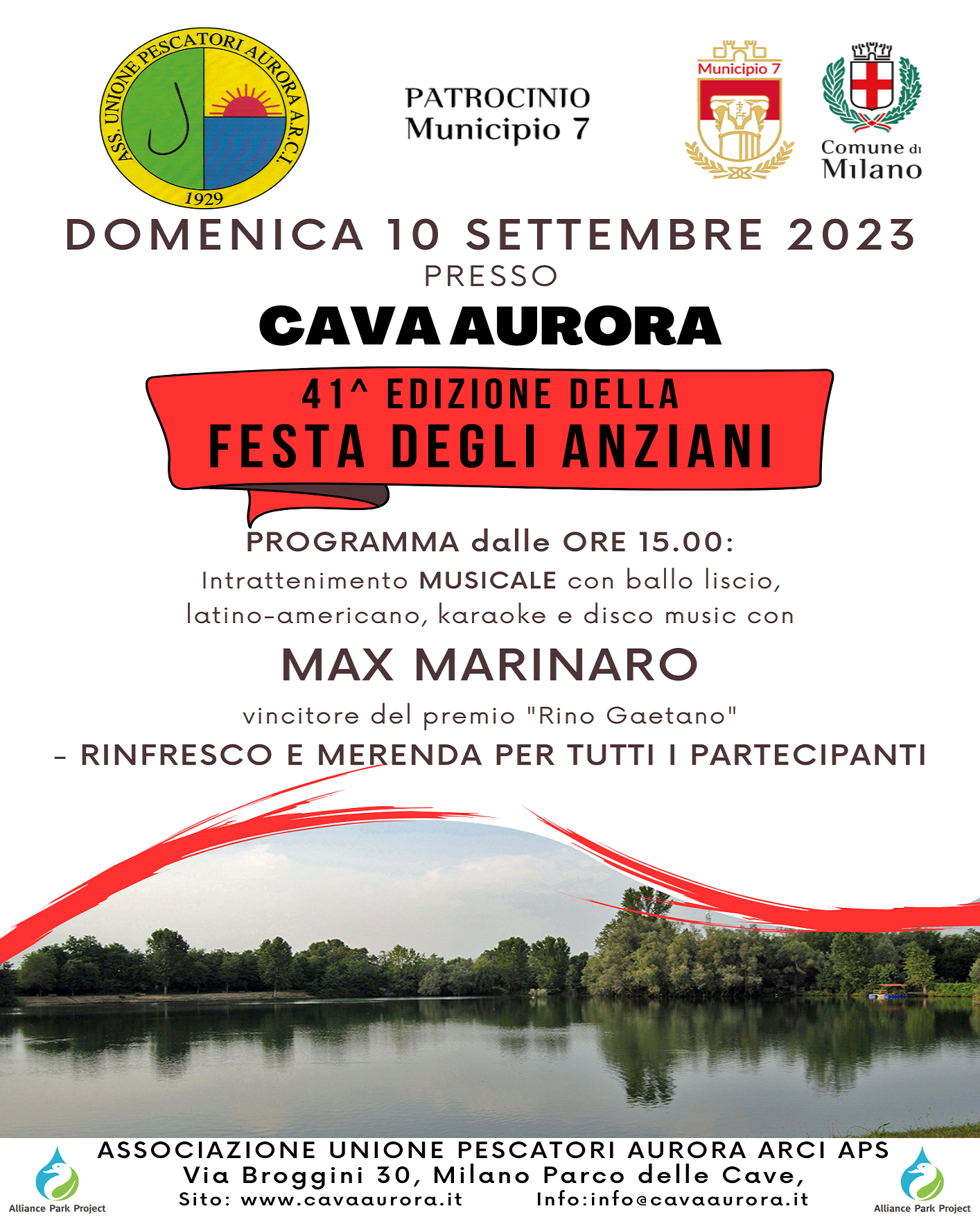 L'associazione Unione Pescatori Aurora con il patrocinio del Municipio 7 organizza l’iniziativa “Festa degli Anziani”, giunta alla sua 41° edizione, domenica 10 settembre dalle ore 15:00, presso la sede dell'associazione Cava Aurora in via Broggini, 30.