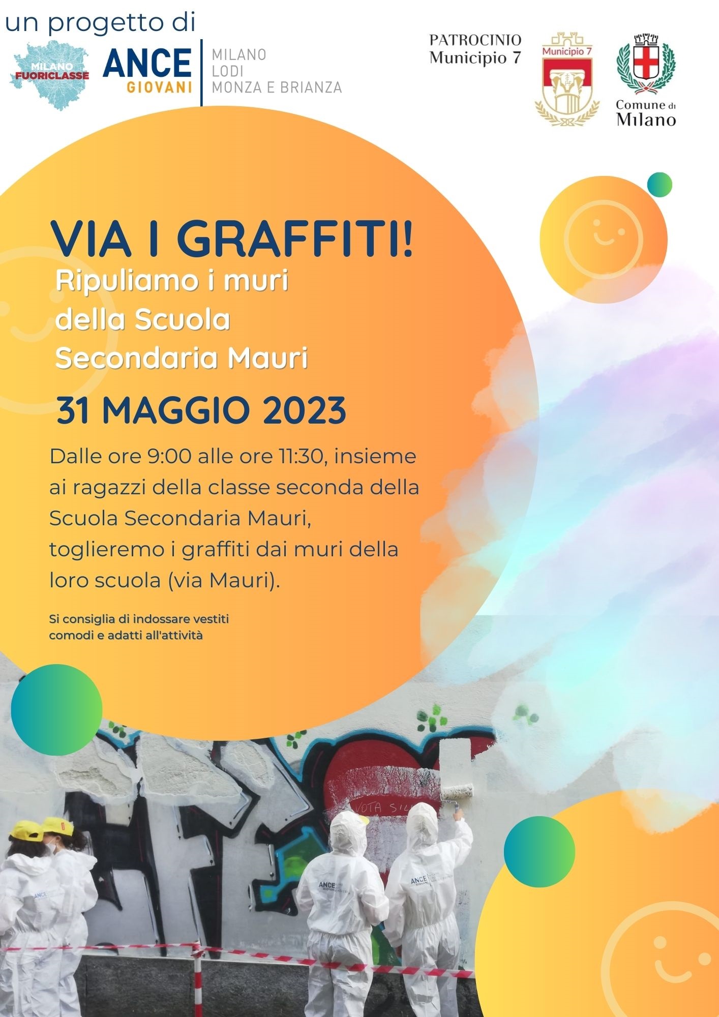 L’associazione Polis Fuoriclasse con il patrocinio del Municipio 7 realizza l’iniziativa di rimozione dei graffiti vandalici presso la scuola secondaria di primo grado di via Mauri, 10 a Milano, mercoledì 31 maggio 2023 dalle ore 9:00 alle ore 11:30.